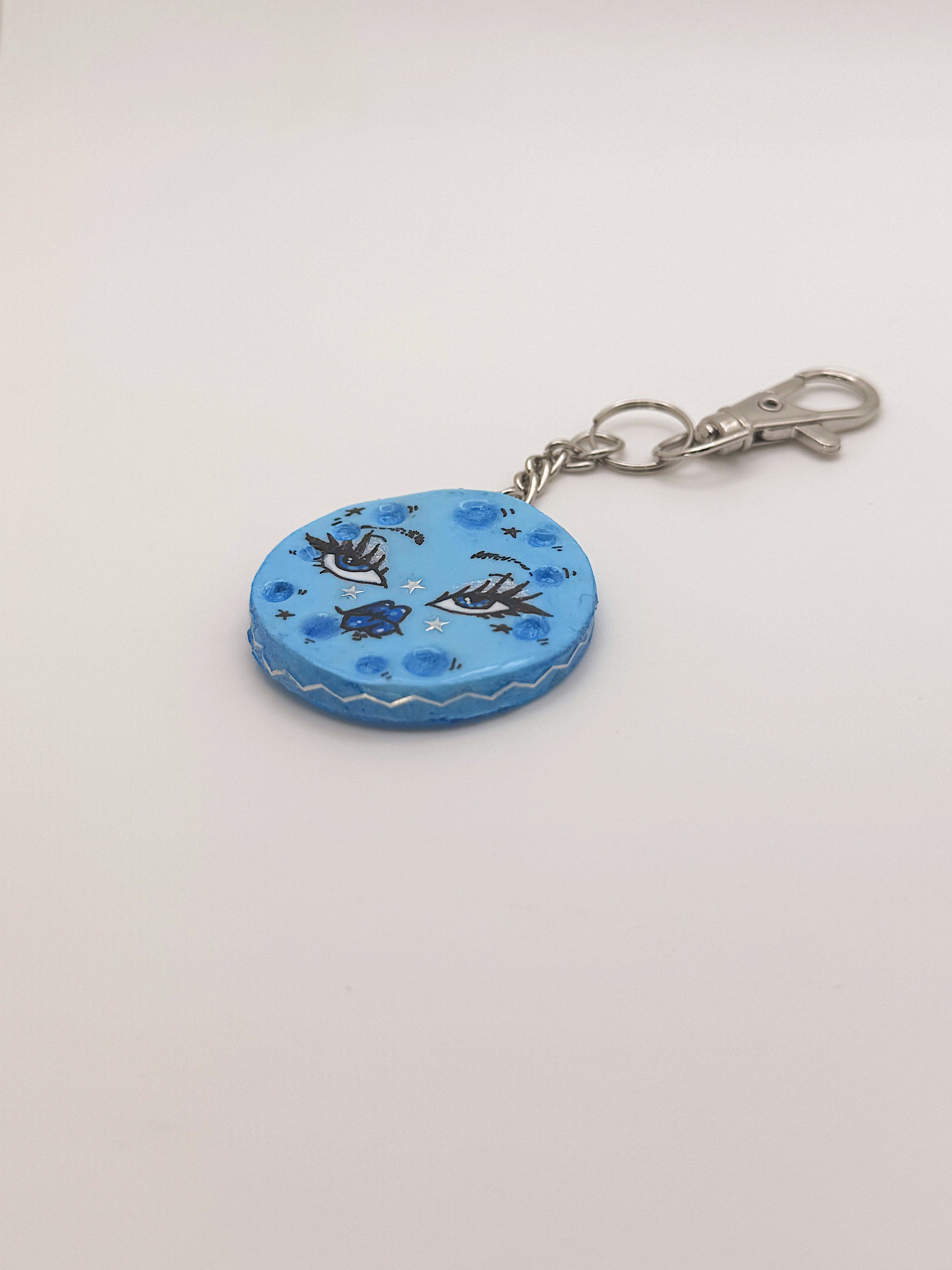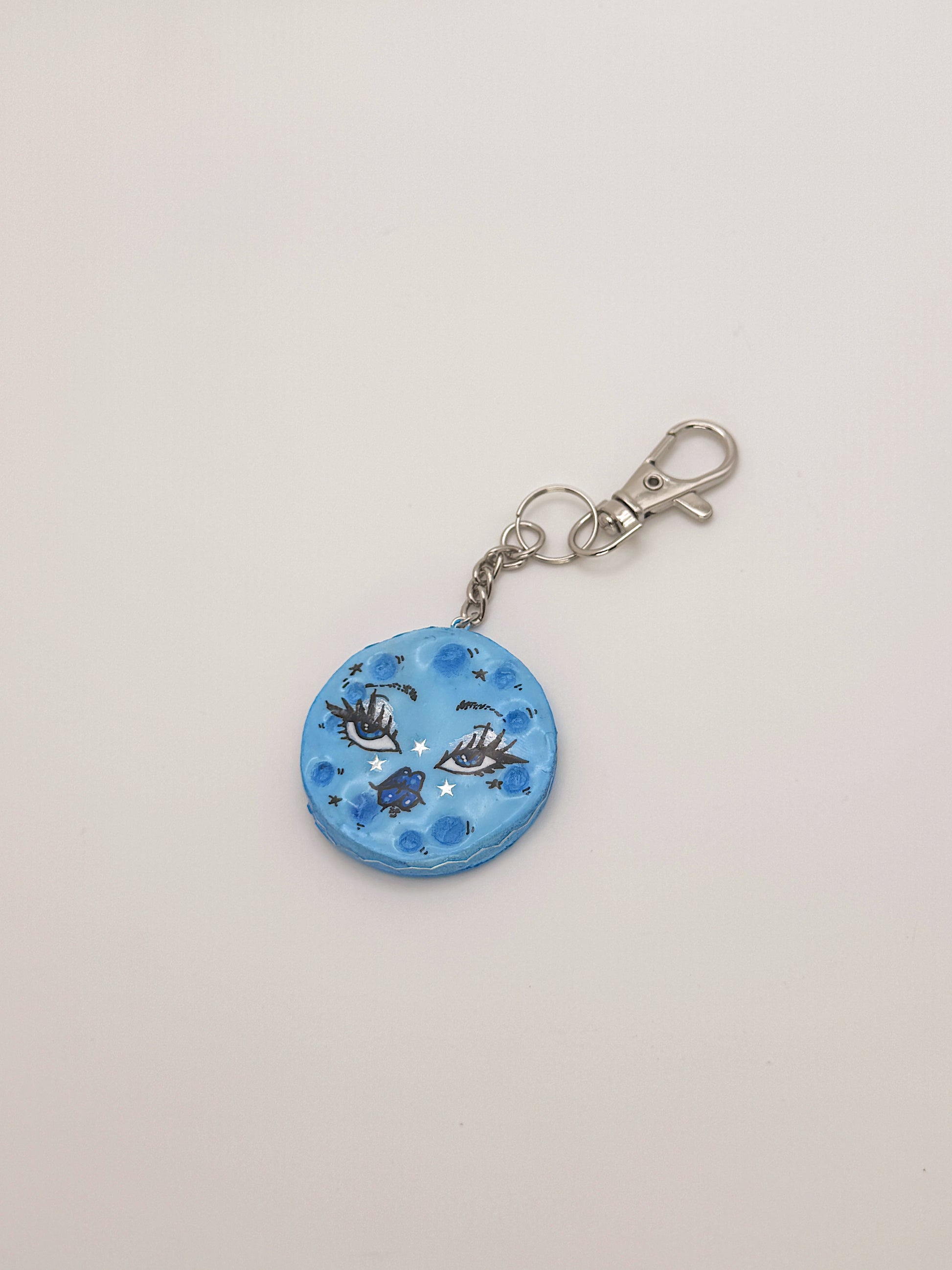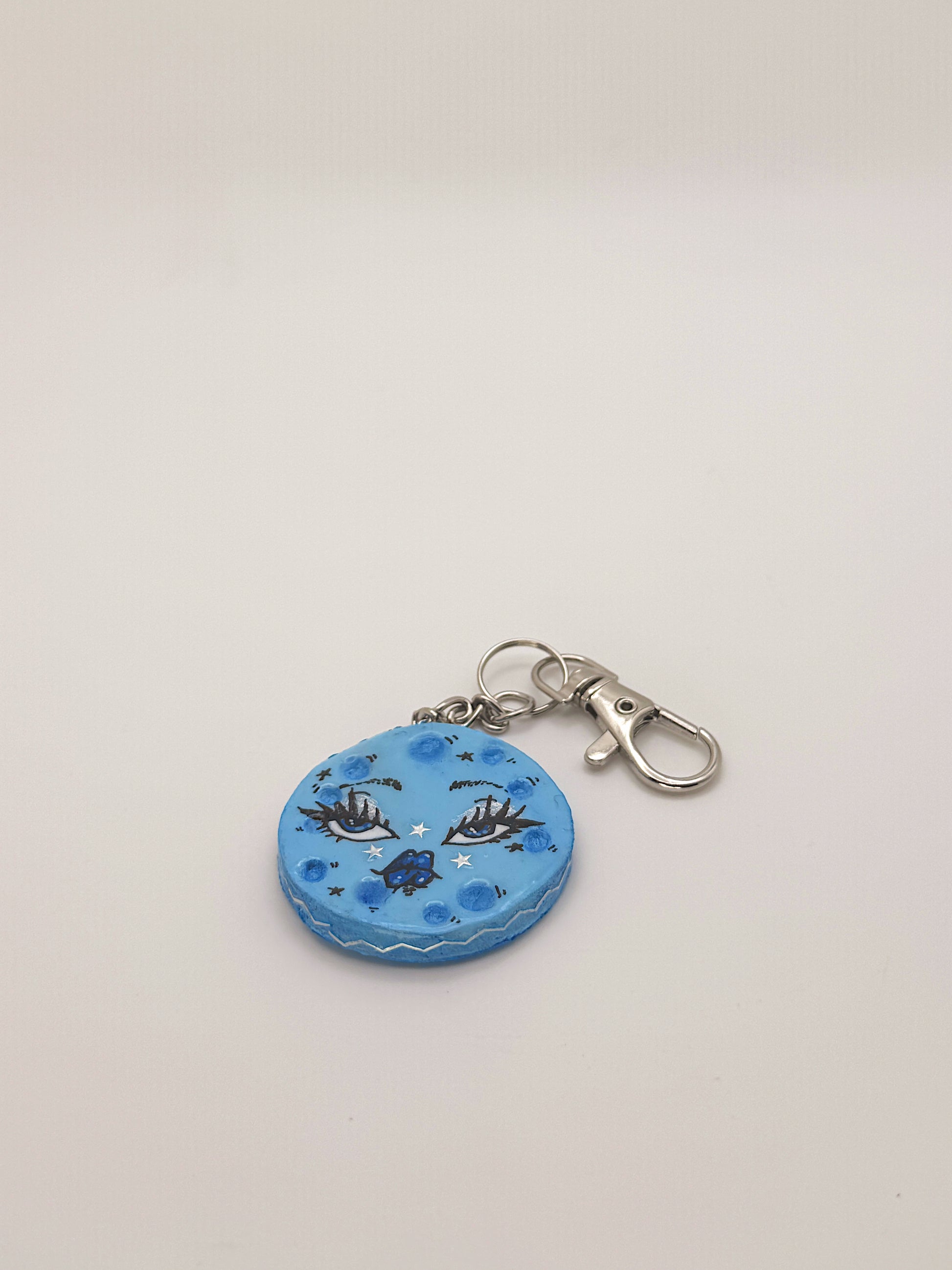 Blue Moon Babe Keychain – Hand-Painted Polymer Clay Charm
