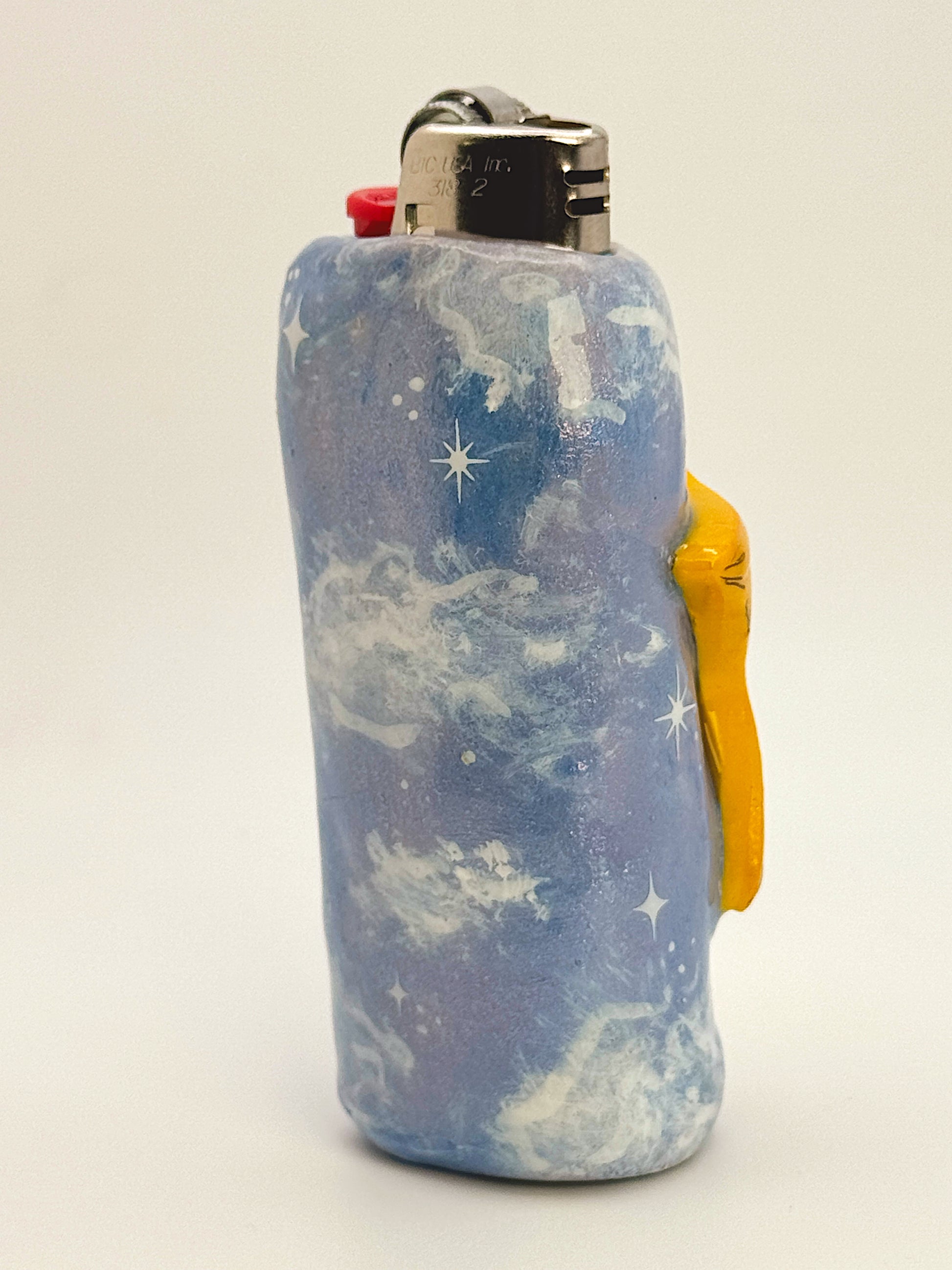 Celestial Star Lighter Case – Hand-Painted Blue Sky Design