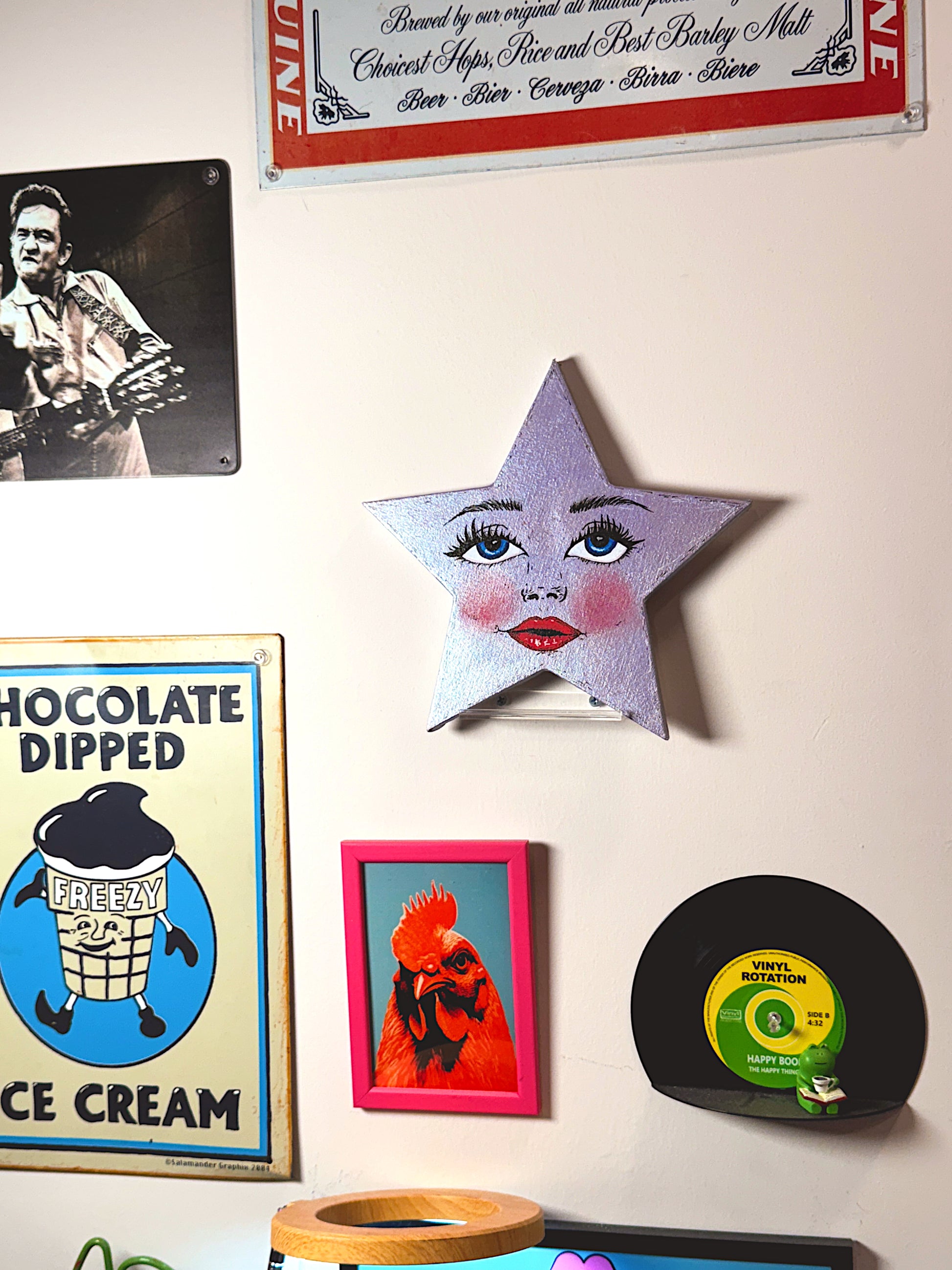 Celestial Star Wall Art – Hand-Painted Star Face Decor— Original 10” Canvas Art