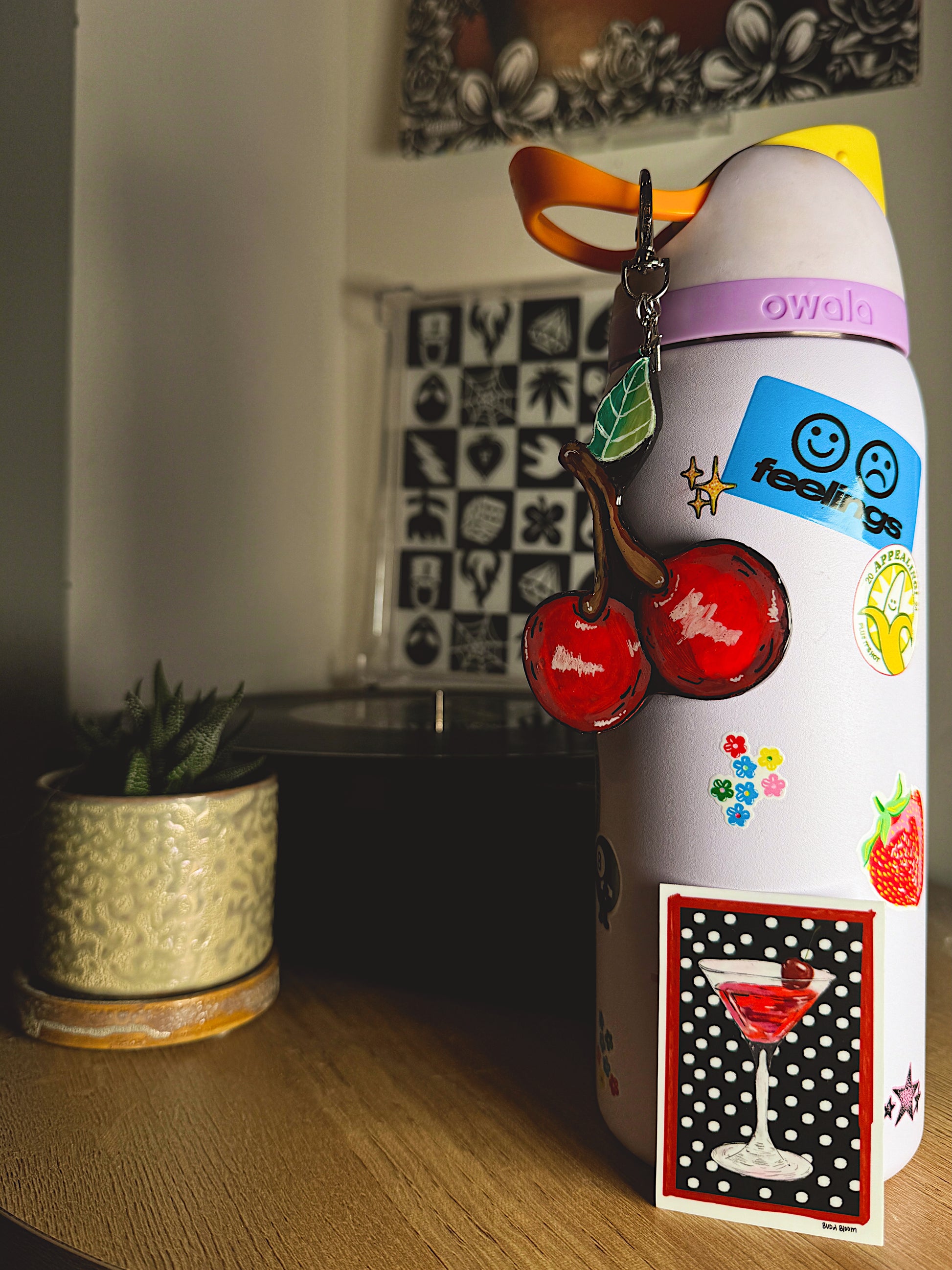 Cherry Martini Sticker – Polka Dot Cocktail Vinyl Sticker, Retro Bar Aesthetic Art