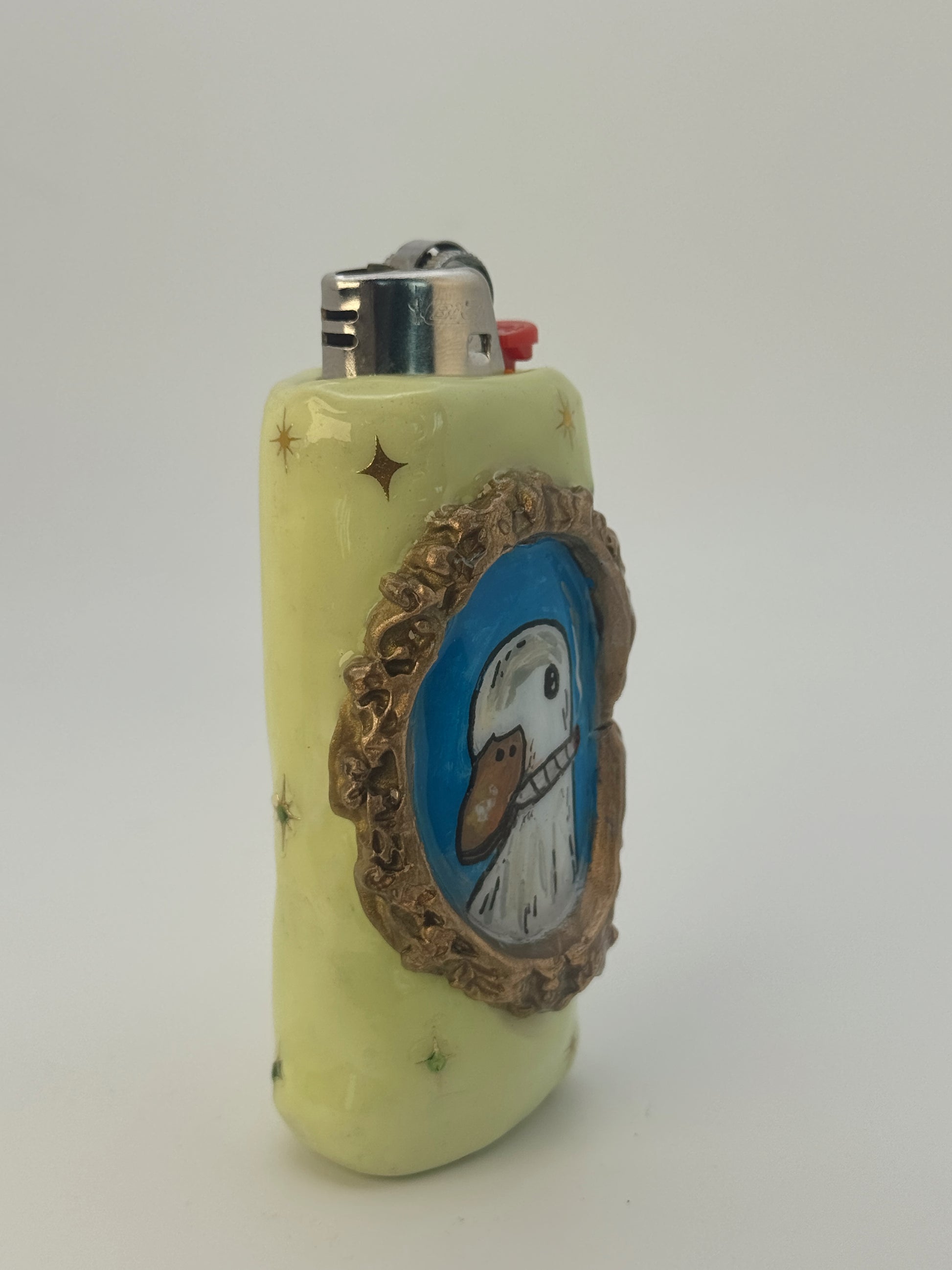 This one-of-a-kind handmade lighter case is sculpted from polymer clay and features my original hand-painted duck portrait — complete with a tiny joint and maximum unbothered energy.