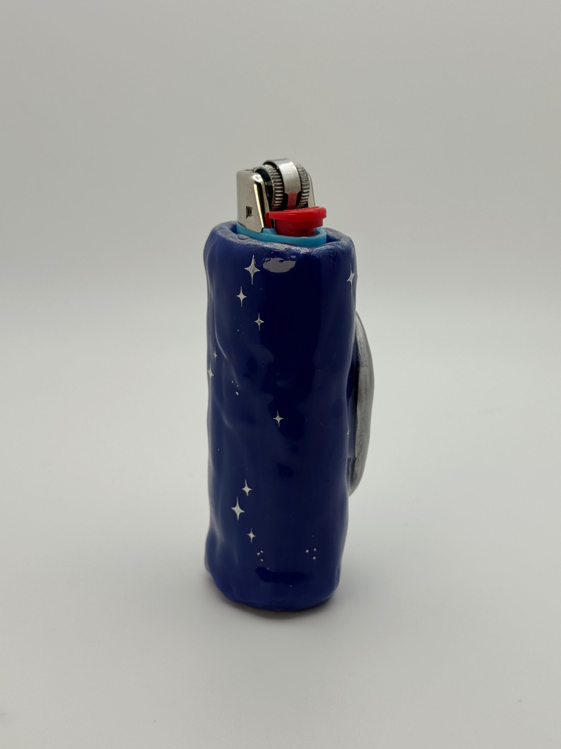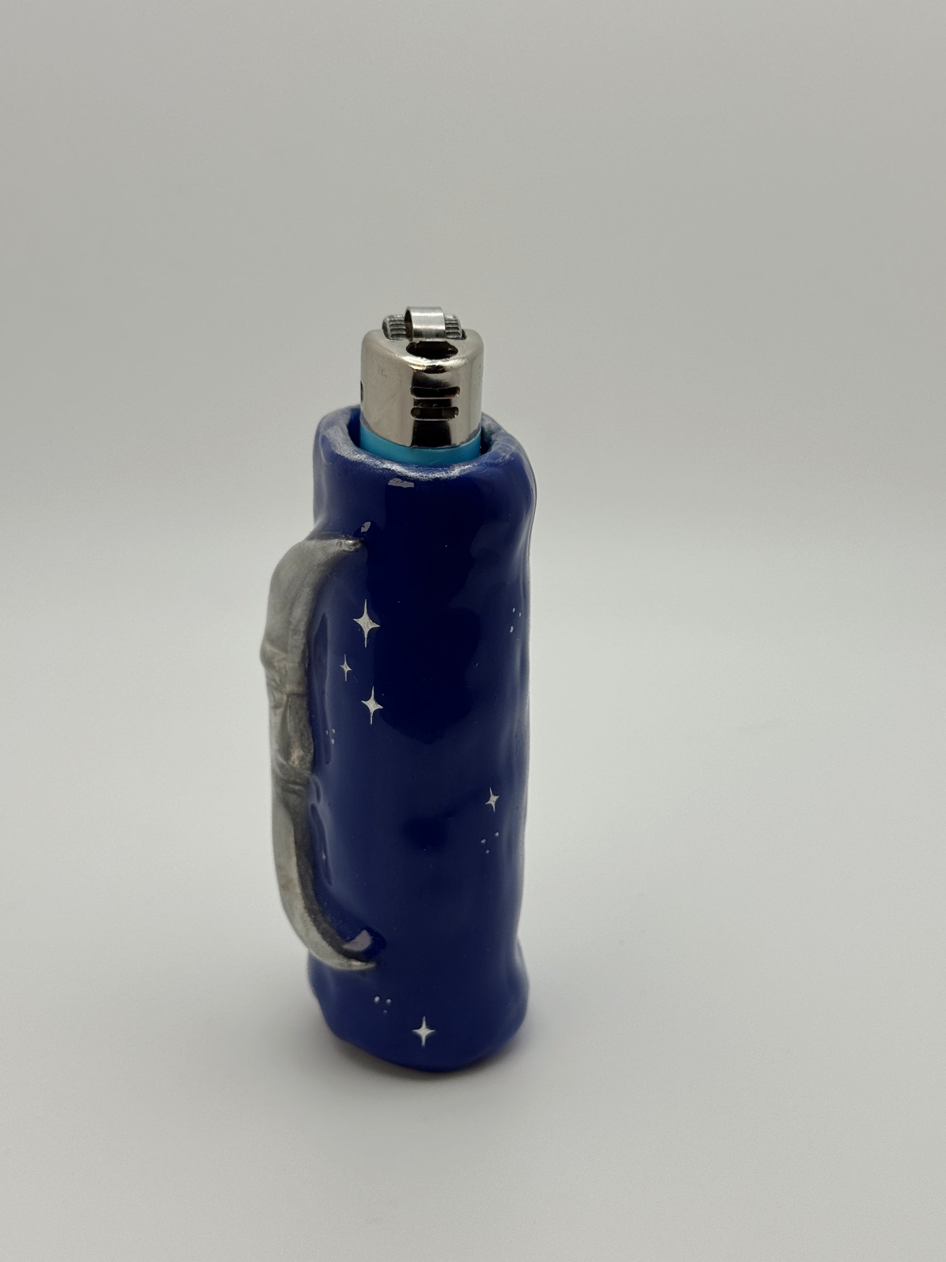 Handmade celestial lighter case sculpted from polymer clay and finished with a glossy seal for durability and shine.