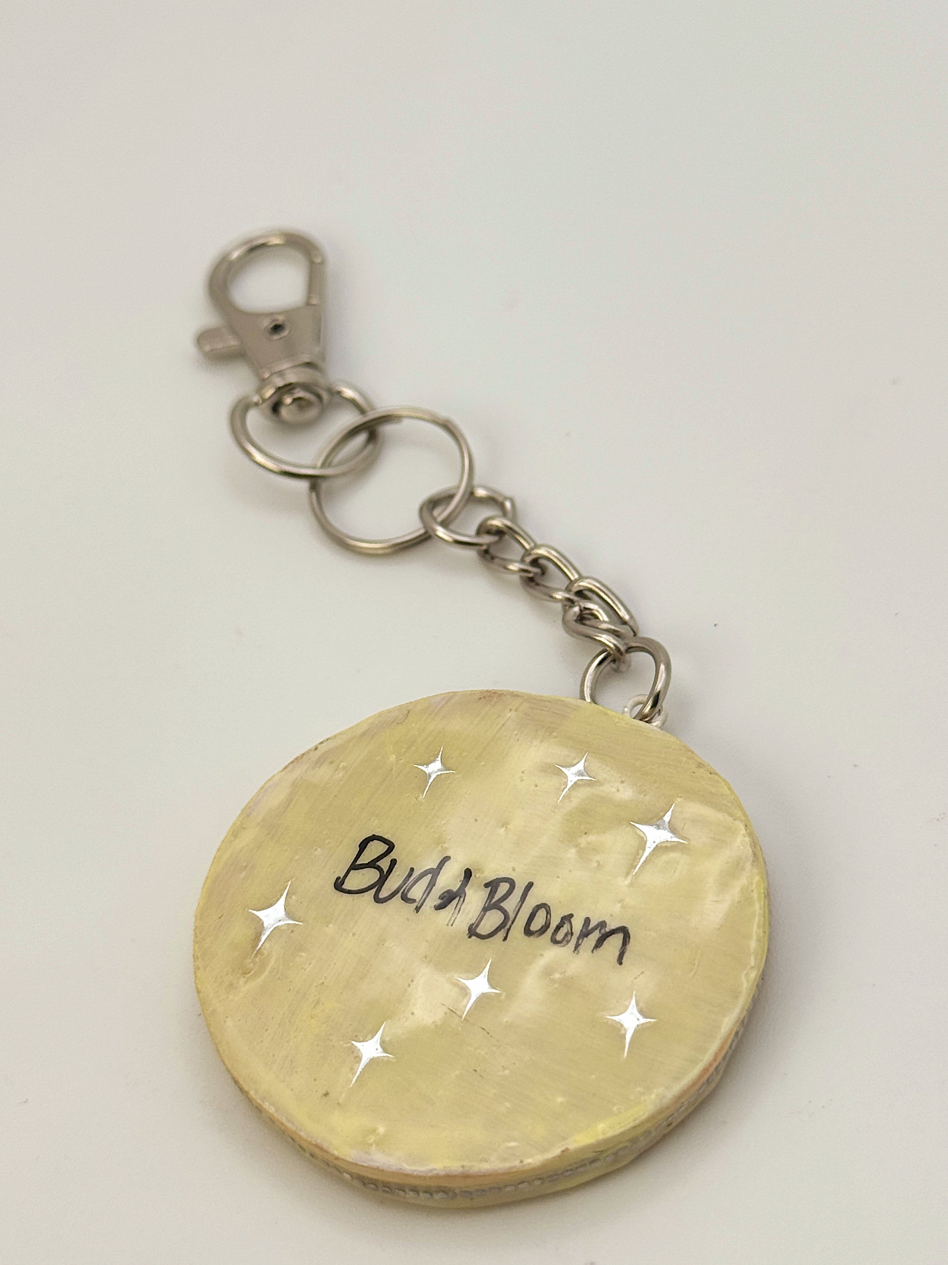Meet the dreamy Moon — a handmade celestial keychain sculpted from polymer clay and painted with a soft creamy glow. She’s covered in subtle craters, silver star details, and the cutest pouty pink lips. Every moon is fully handmade, hand-painted, sealed for durability, and one-of-a-kind.