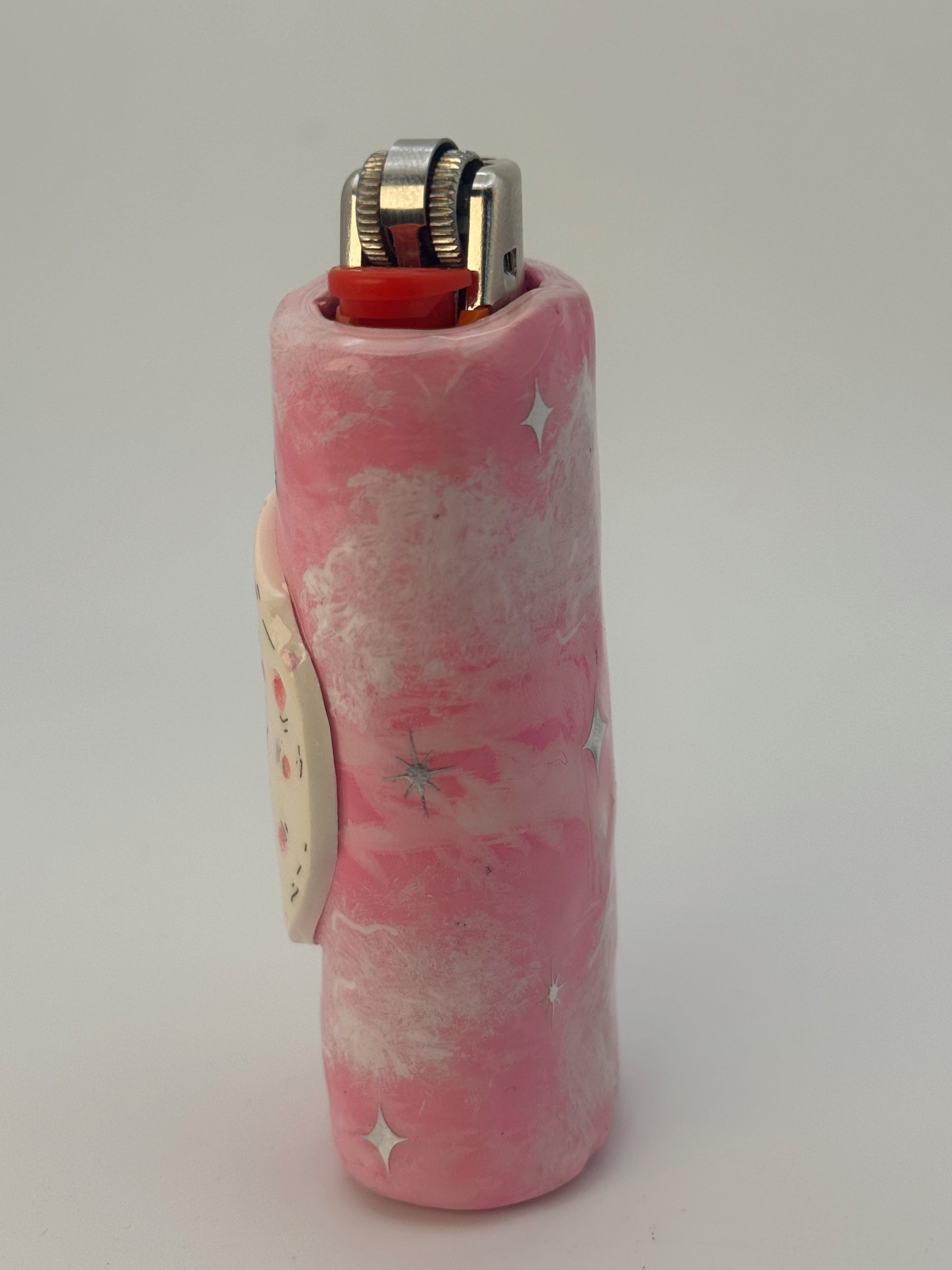 Handmade Smoking Moon Polymer Clay Lighter Case – Pink Celestial Bic Cover