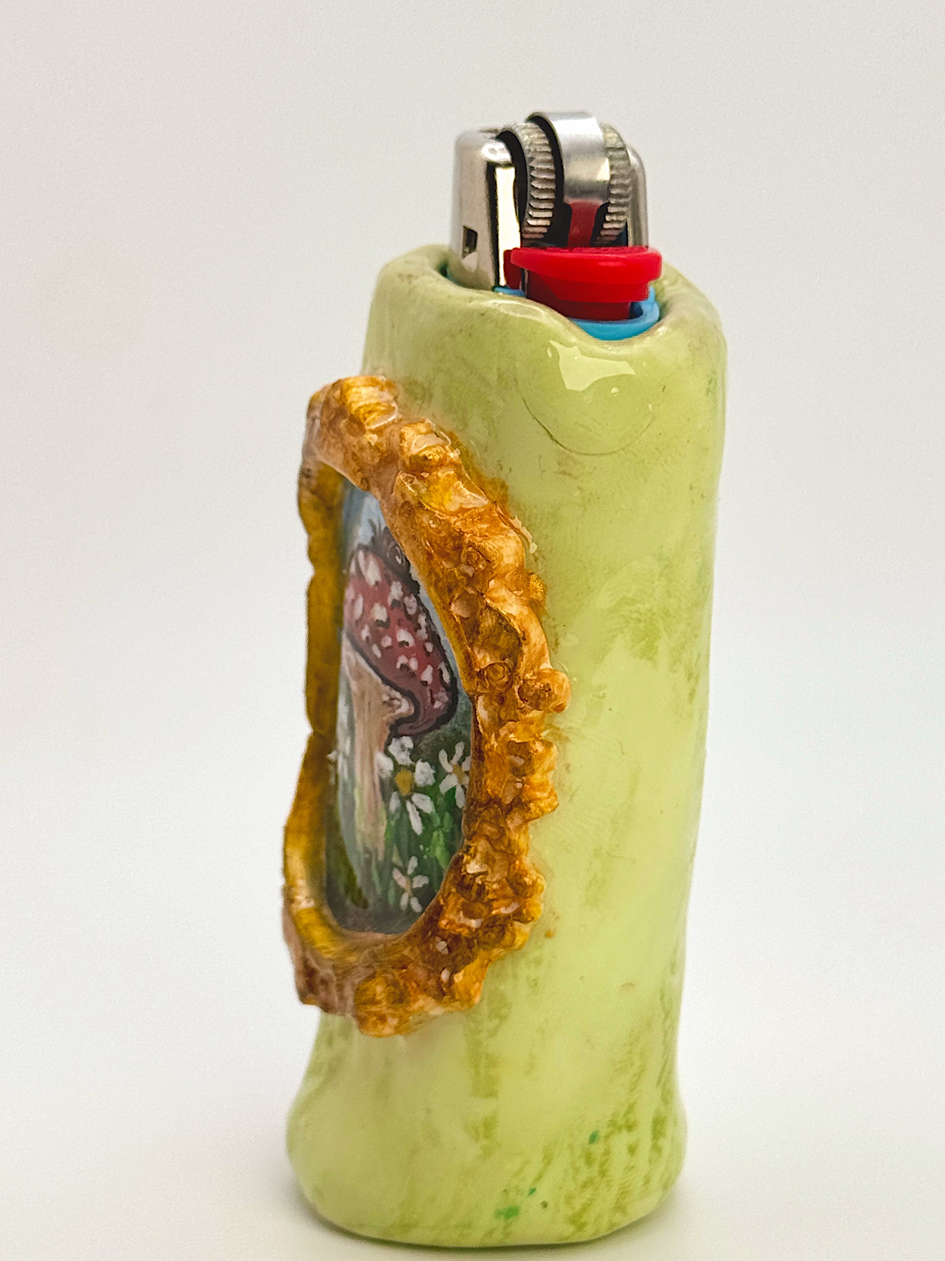 Designed to fit a standard Bic lighter (lighter not included), this piece is perfect for nature lovers, cottagecore aesthetics, and anyone who appreciates detailed, handmade work.