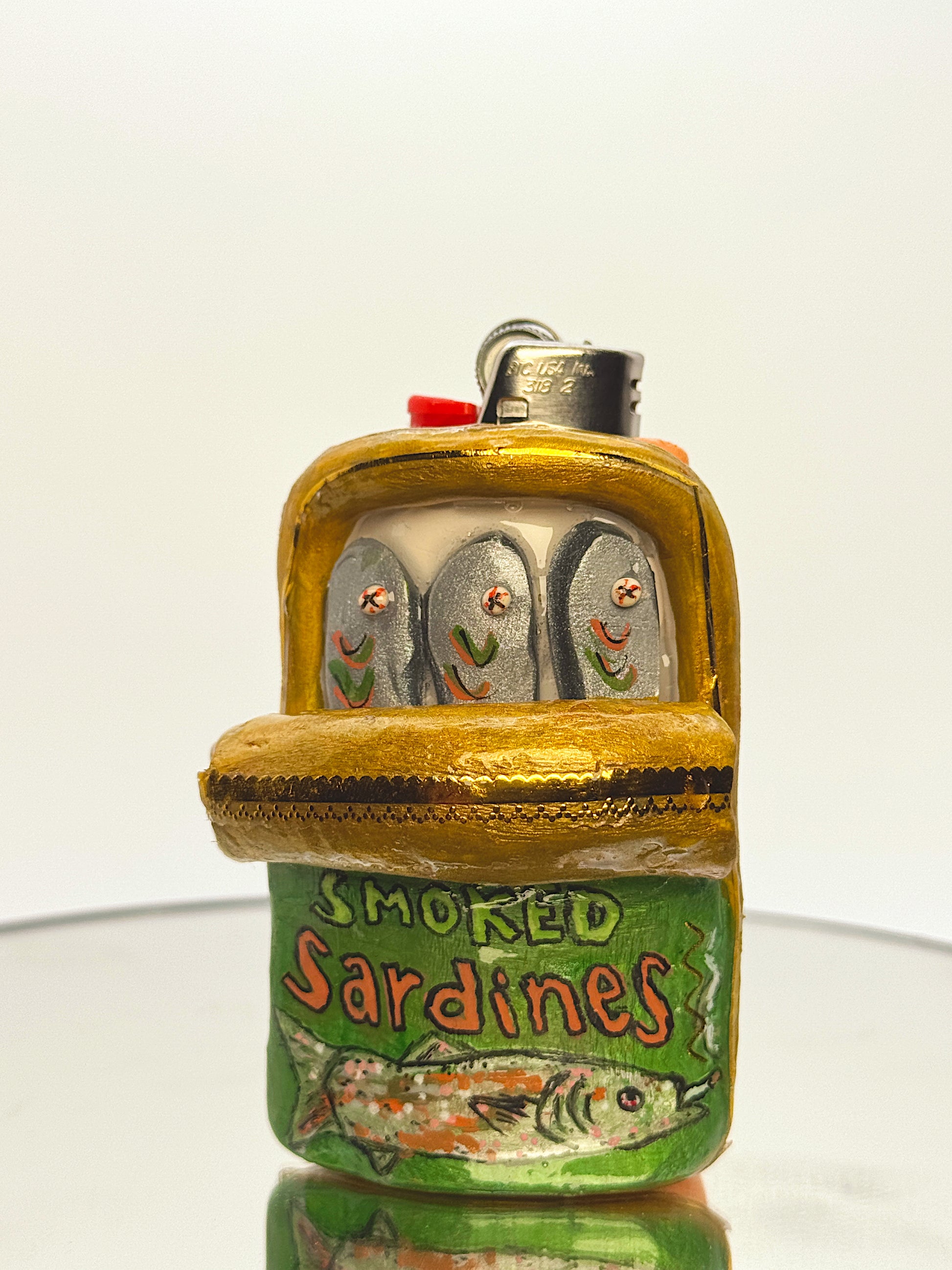 Smoked Sardines Lighter Case – Funny Handmade Polymer Clay Lighter Cover | Unique Gift for Smokers