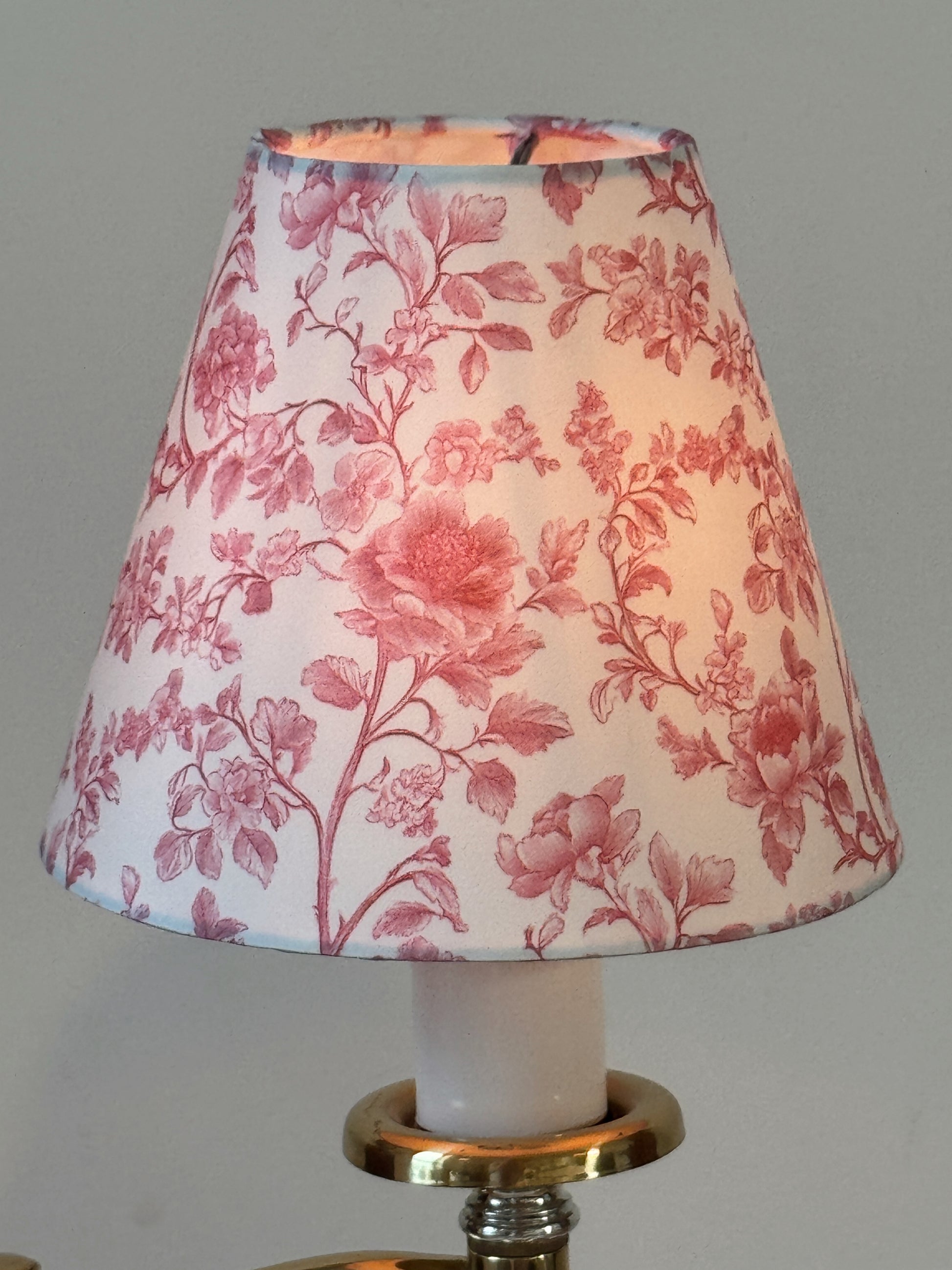 Sturdy, heavy base with a warm polished brass finish. Lamp works great and has been styled with a floral shade for a cozy cottage look.