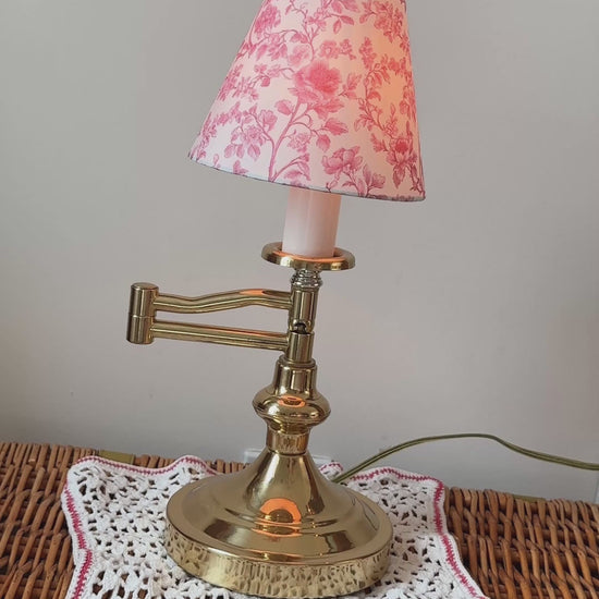 Beautiful vintage solid brass candlestick-style lamp featuring an adjustable swing arm that rotates 360 degrees. The arm extends outward, making it perfect for reading or directional lighting.