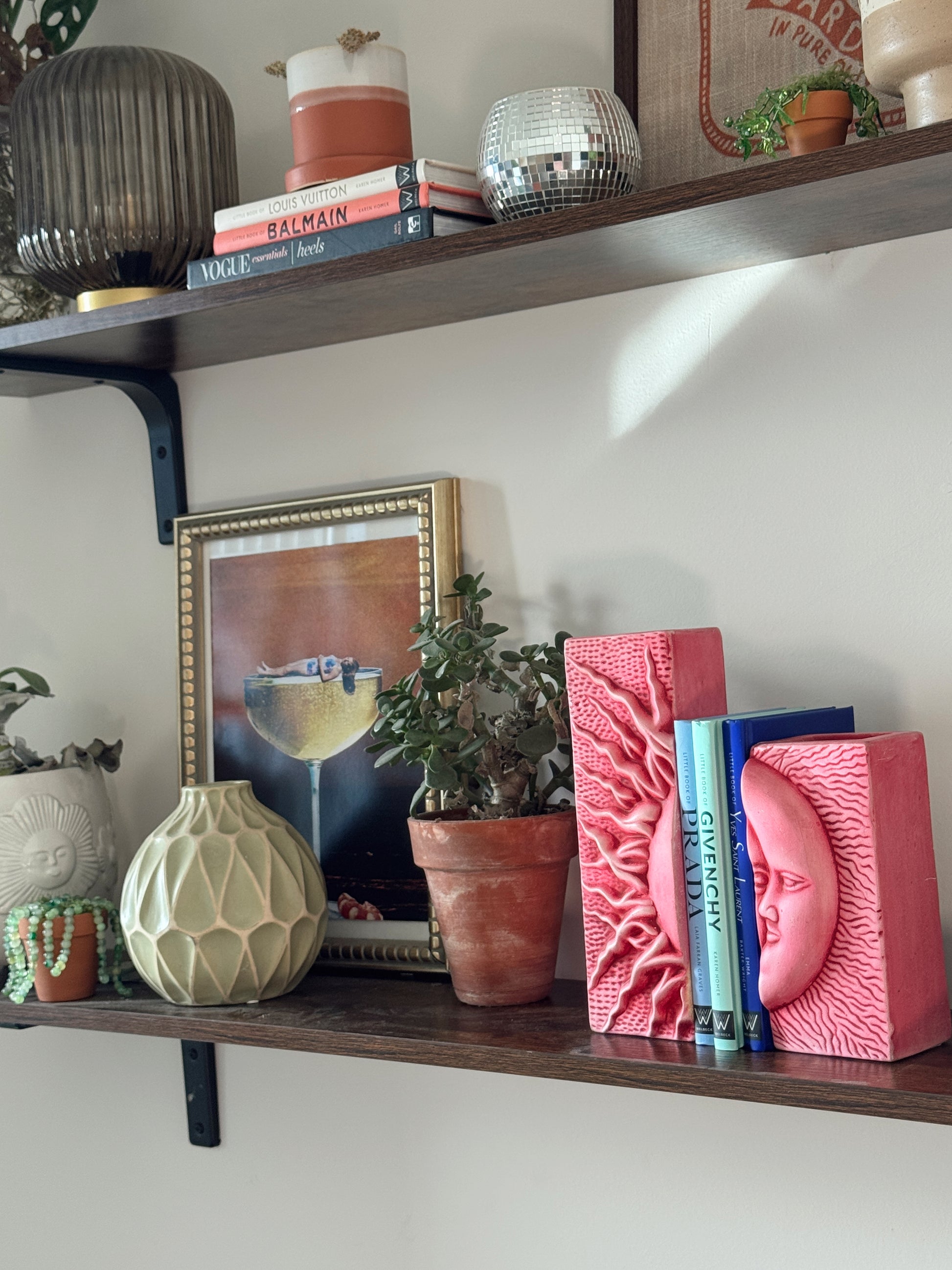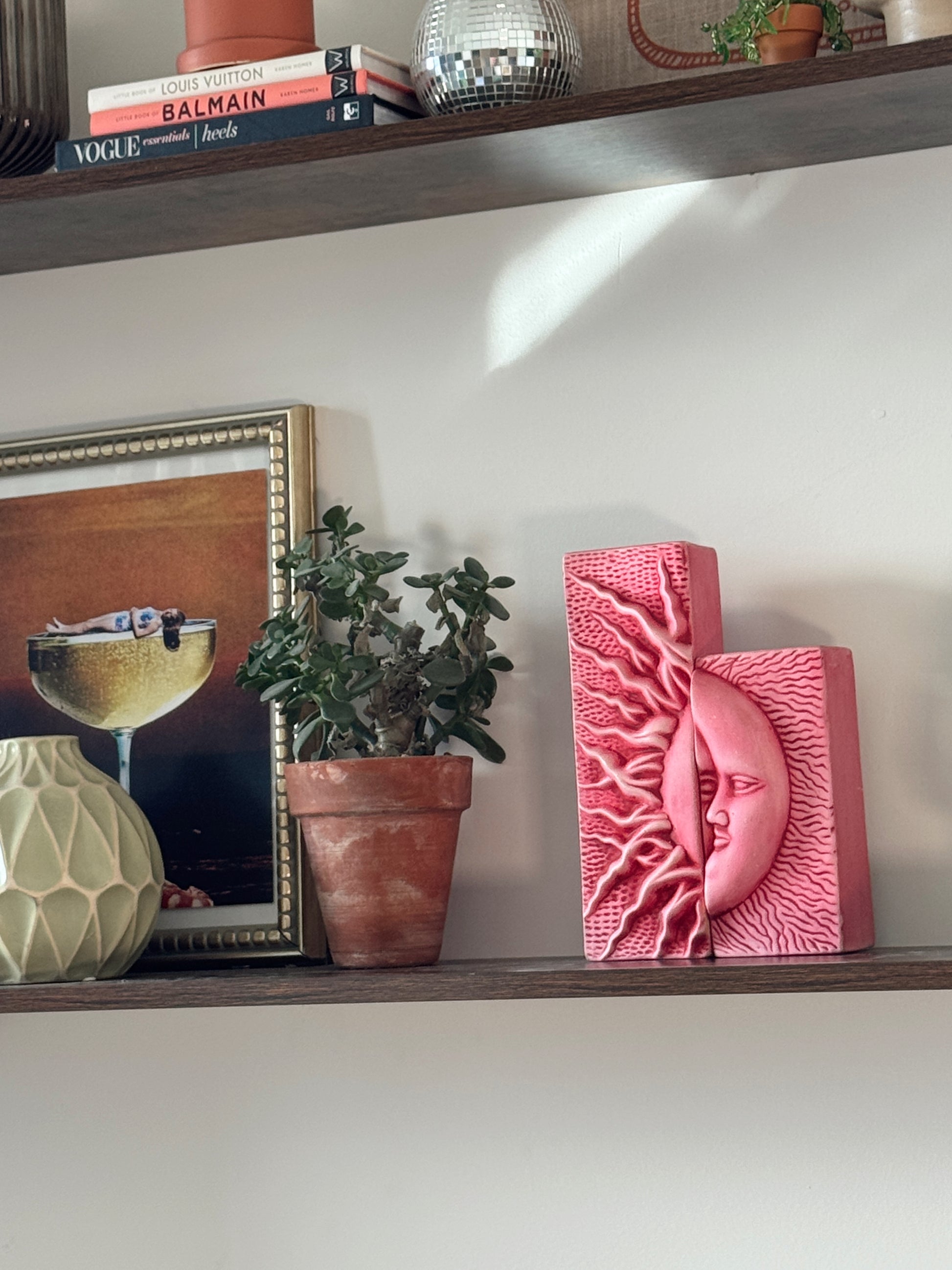 Vintage Pink Ceramic Sun & Moon Sculptural Bookends / Candle Holders (Set of 2)