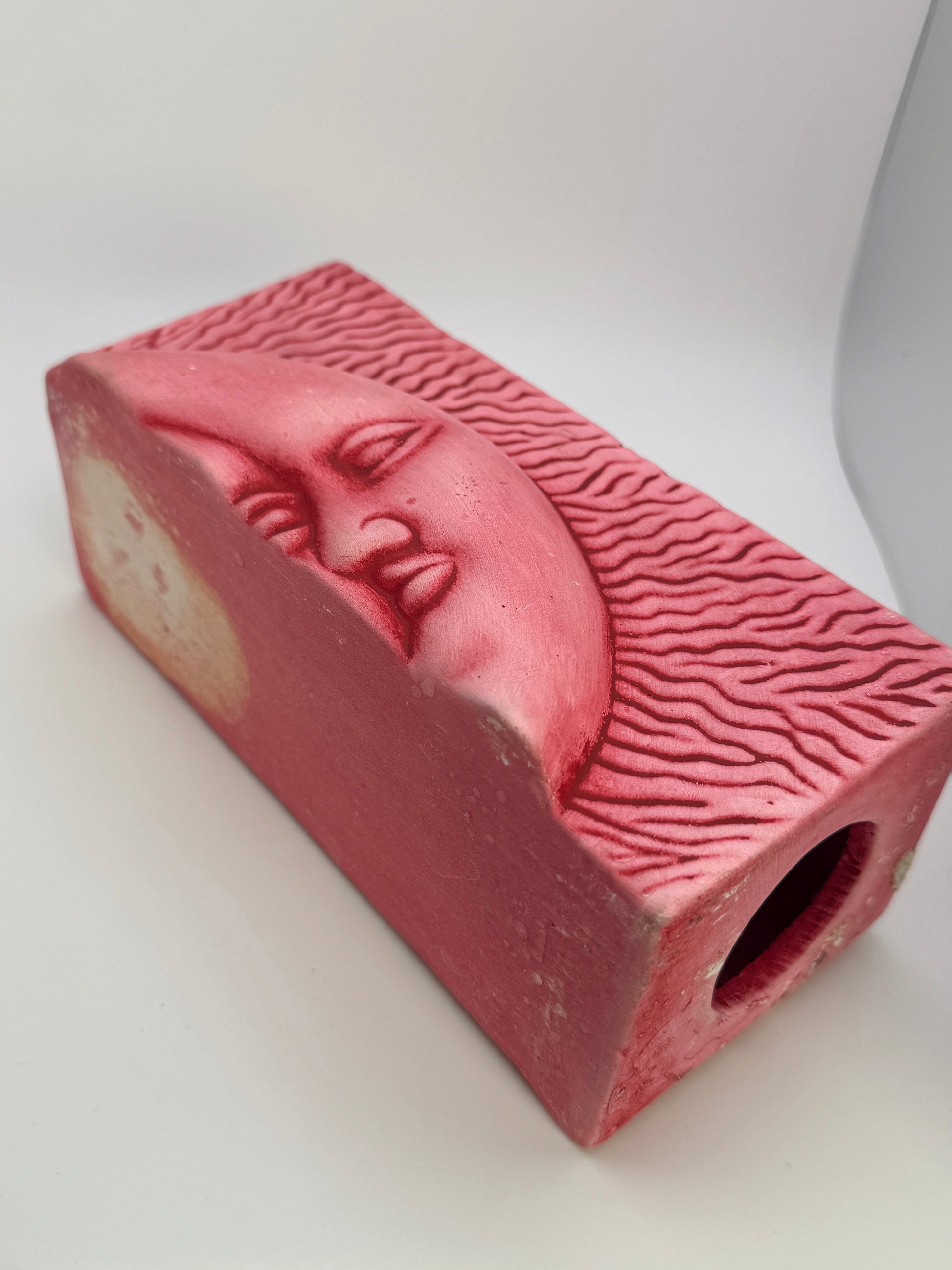 A unique pair of vintage ceramic sculptural pieces featuring a dreamy sun & moon motif with textured, ocean-inspired detailing on the reverse.